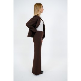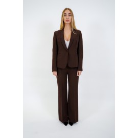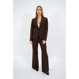 Elena Casali women's suit. Jacket: single-breasted, quilted, slim fit. Pants: flared, high waist, zip and button closure.