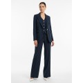 Women's pinstriped suit with single-breasted jacket, waistcoat with contrasting gold buttons, and palazzo pants with zip and button closure. You can't do without it this spring/summer.