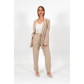 Dixie solid-color women's suit, featuring an oversized single-breasted jacket with a button closure. Solid-color straight-leg pants with a zip, button, and hook closure. The model is wearing size XS.