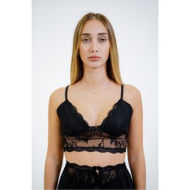 Haveone women's lace top, adjustable straps, crop style, slim fit. The model is wearing size XS.