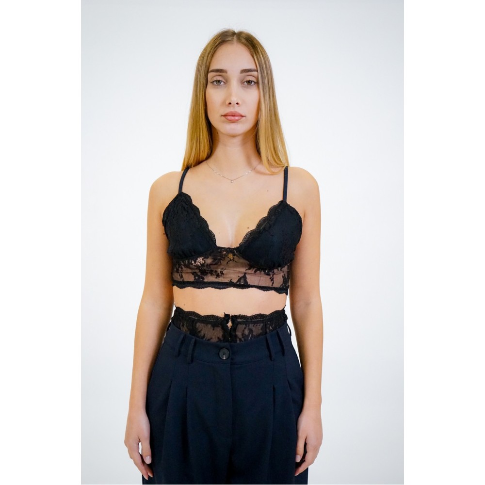 Haveone women's lace top, adjustable straps, crop style, slim fit. The model is wearing size XS.