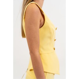 Silence Limited women's solid color vest with contrasting gold buttons, double-breasted, square neckline.