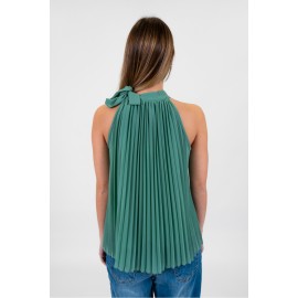 Dixie women's pleated tank top with brooch detail, solid color, drawstring closure at the shoulder, regular fit. The model is wearing size S.