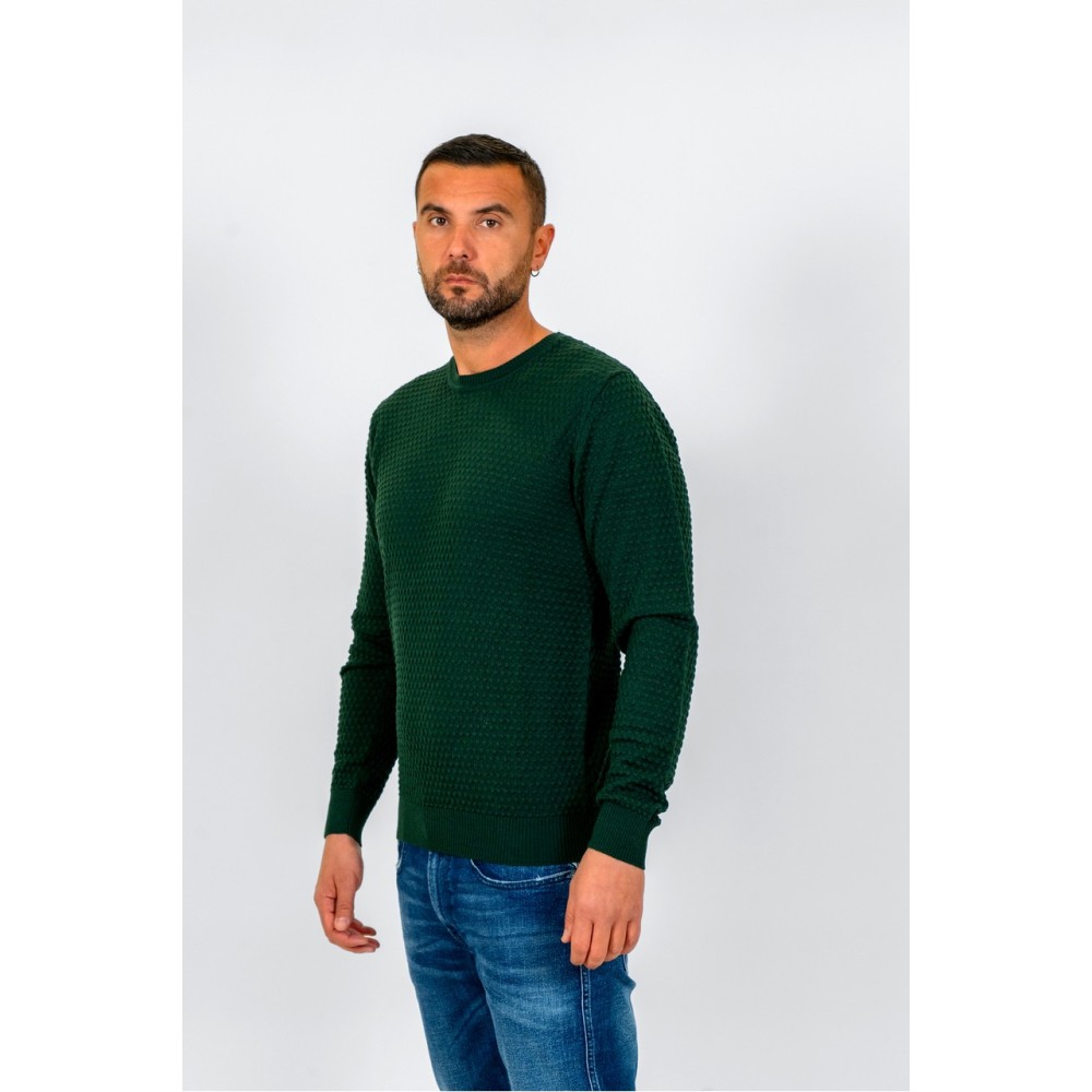 Maglioncino uomo in lana a fantasia, girocollo, tinta unita, vestibilità regular.