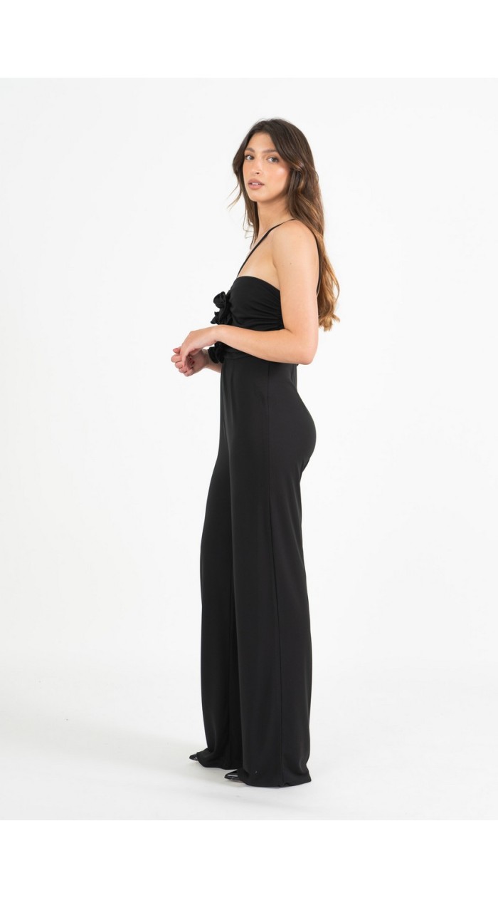 Tuta donna Dixie a palazzo, tinta unita, dettaglio rouge sul corpetto, bretelle ad incrocio, chiusura con zip sul retro.