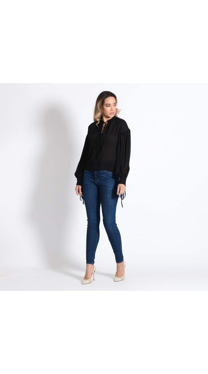 Camicia donna Vicolo manica a palloncino in cotone stretch.