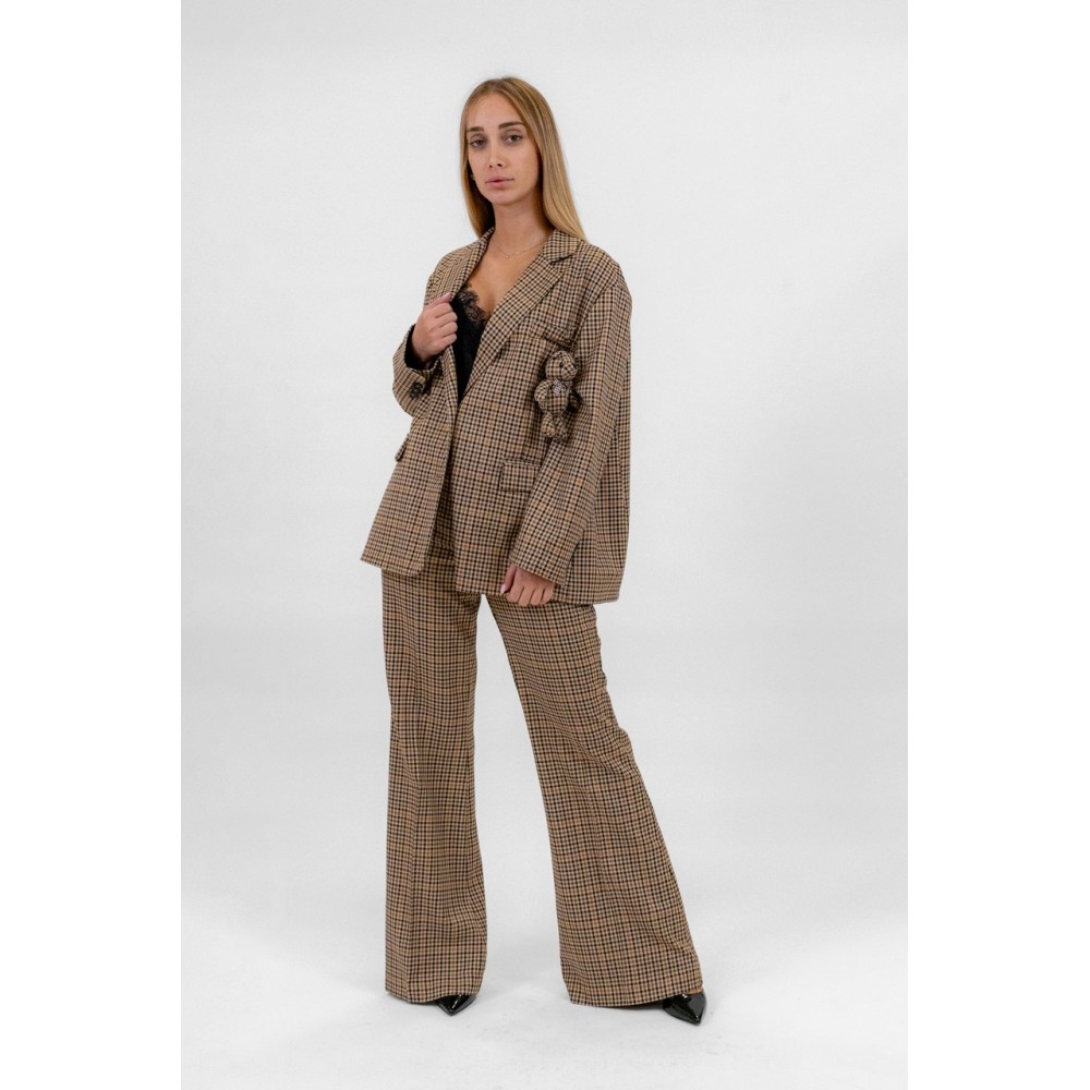 Pantalone donna Dixie a quadri, modello a zampa, chiusura con zip e clip,tasca america, vestibilità slim.