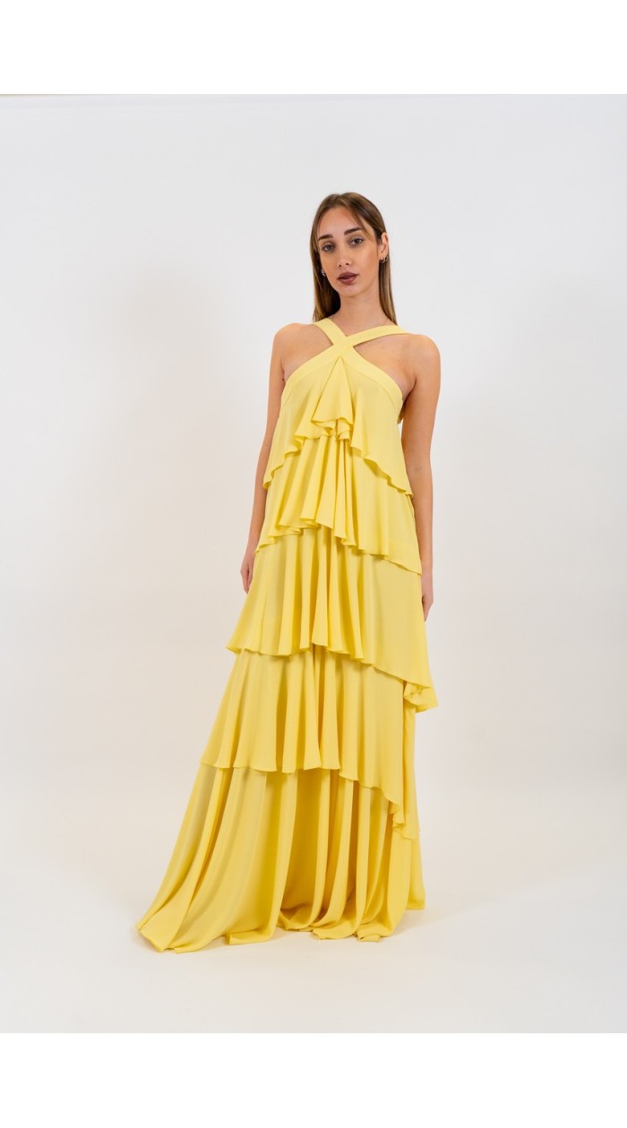 Abito donna lungo Silence Limited a balze, vestibilità regular, tinta unita, scollo profondo sul retro.