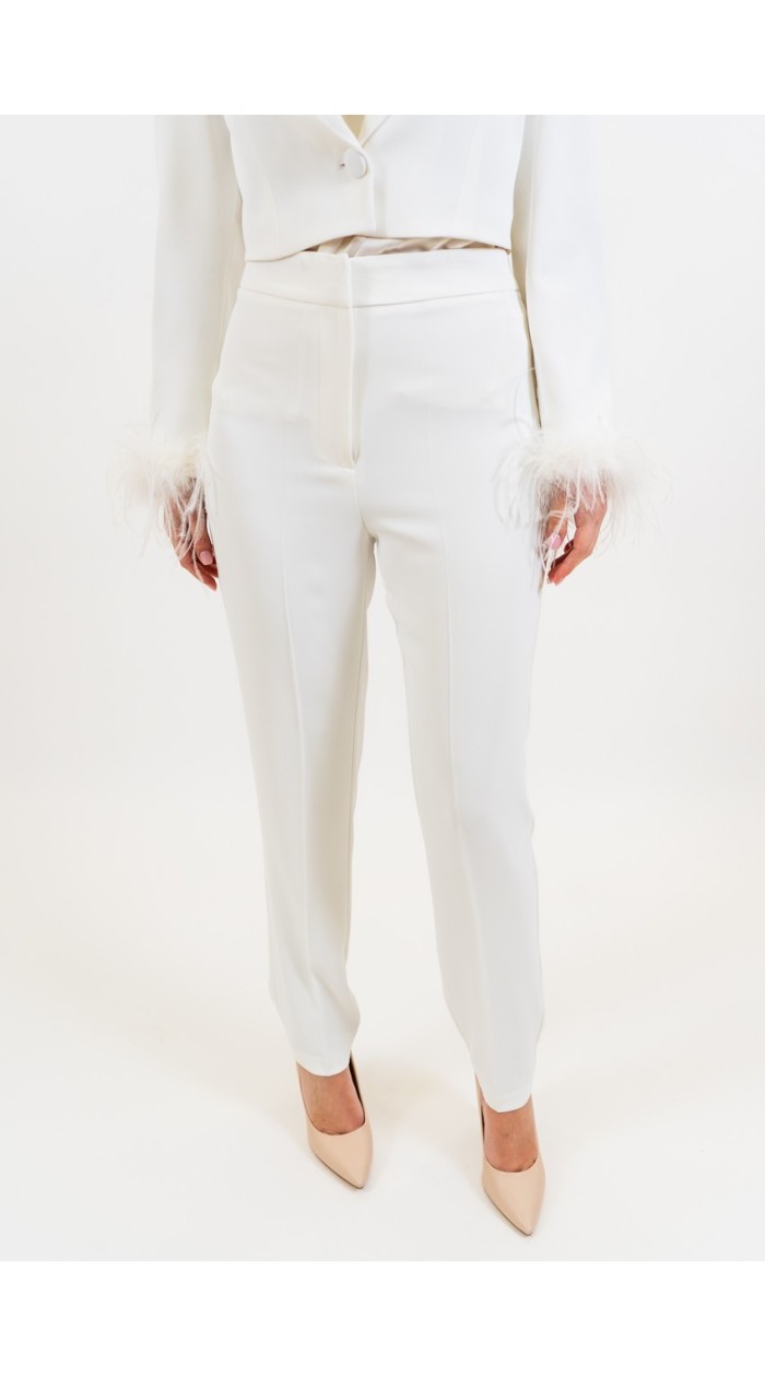 Pantalone donna Silence limited a sigaretta, tinta unita, chiusura con zip e gancio. La modella indossa la tg XS.