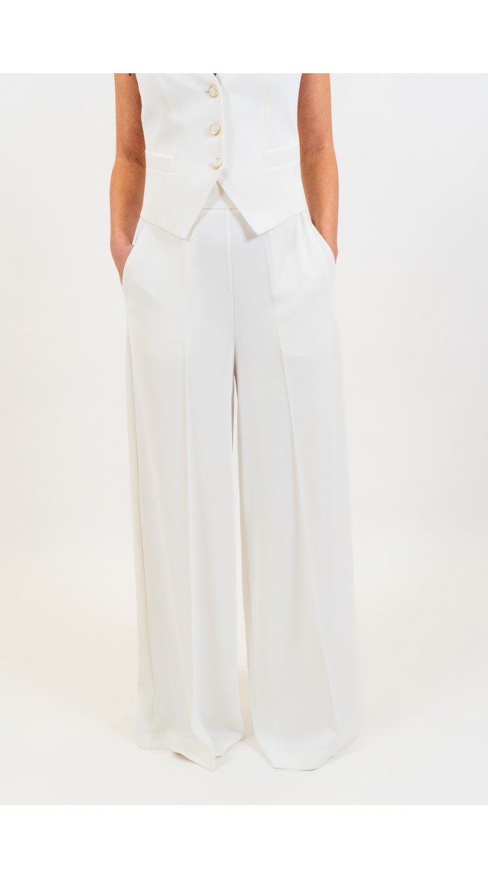 Pantalone donna Silence limited a palazzo, tinta unita, chiusura con zip laterale. La modella indossa la tg XS.