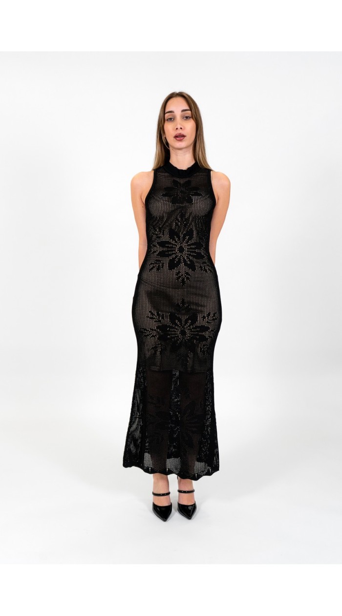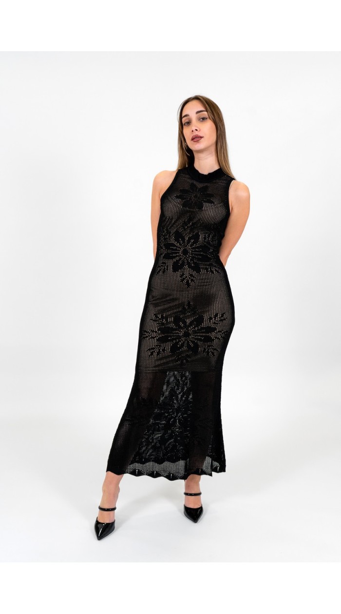 Abito lungo in maglia di misto viscosa con lavorazione a rete con motivo a fiori in dégradé.