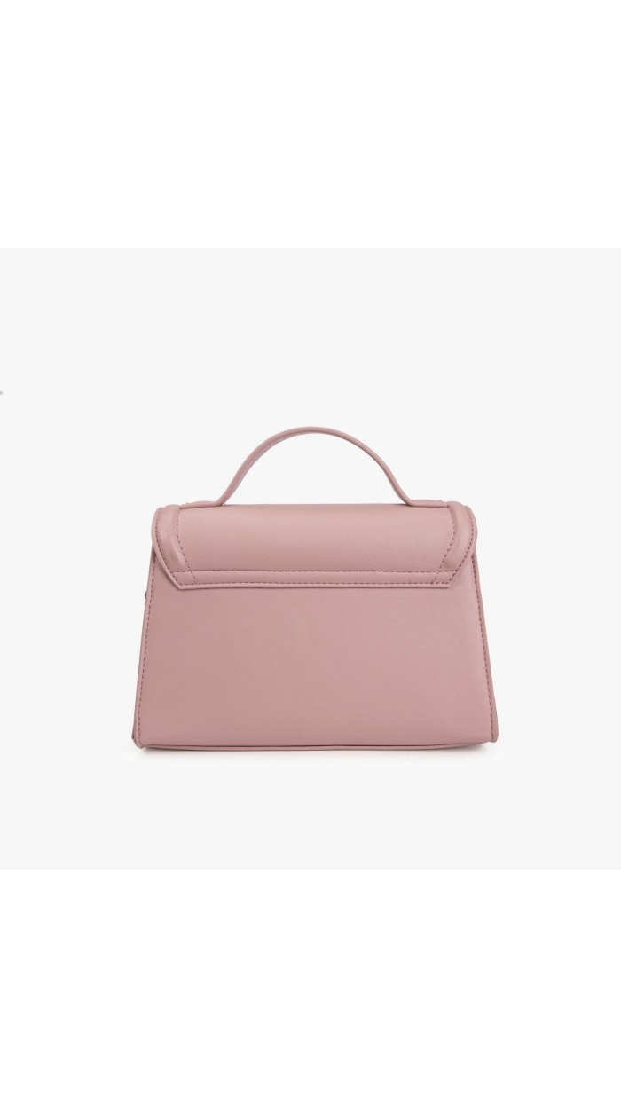 Mini bag in ecopelle liscia, chiusura con automatico, piccolo manico in ecopelle, tracolla in ecopelle regolabile con moschettoni, due tasche interne di cui una con zip .Logo VIVIENNE D finitura dorata. Fodera 100% poliestere