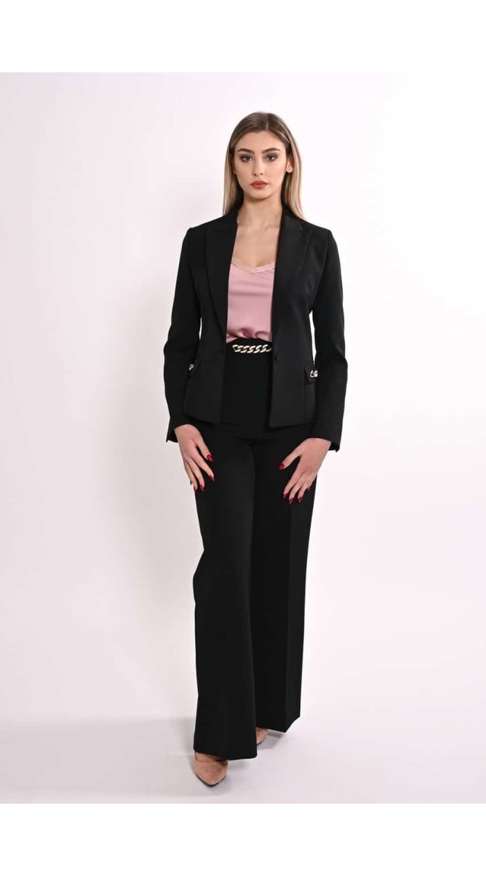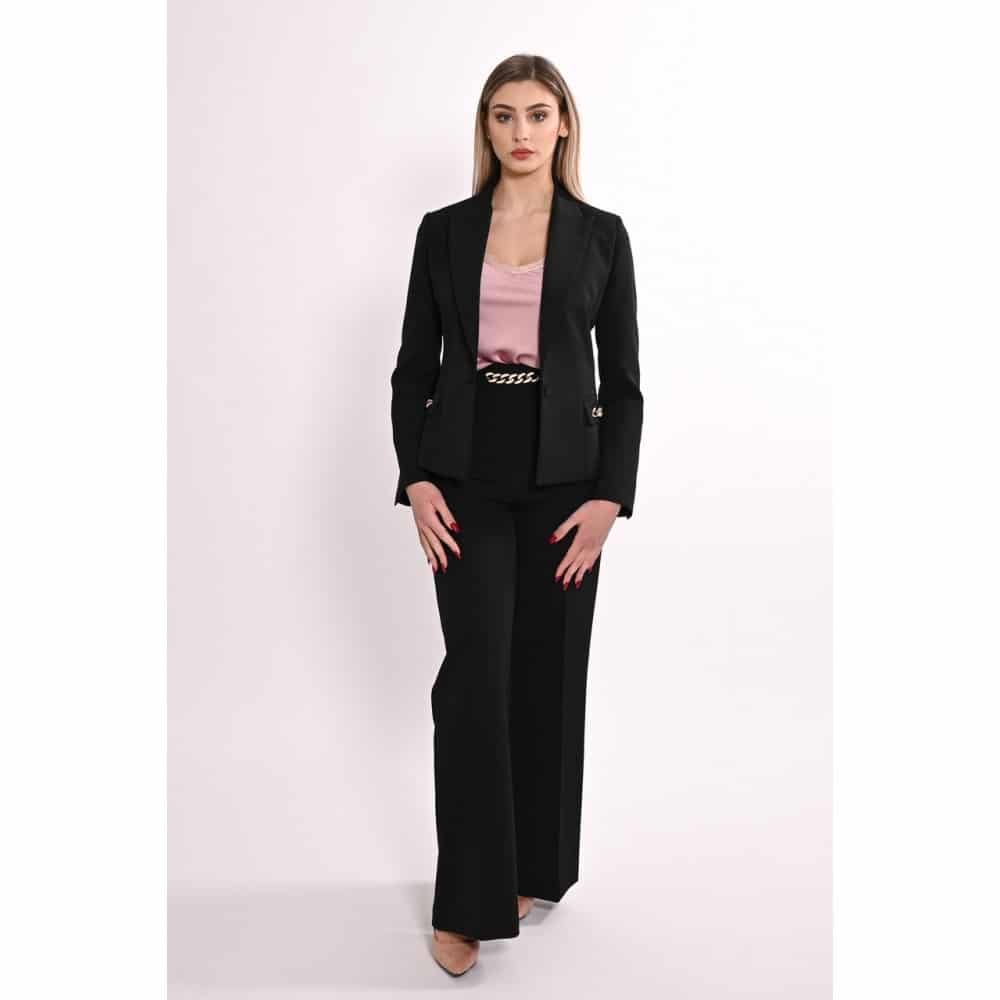 Pantalone donna Vicolo full lenght con catena, chiusura zip, gamba ampia, vita alta.