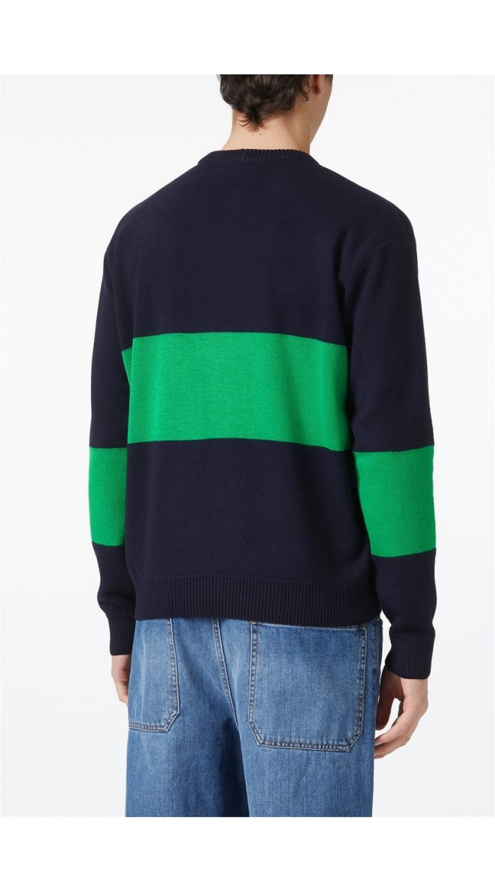 Maglia uomo in lana Iceberg con stampa bugs bunny, manica lunga, girocollo, bicolore, vestibilità regular.