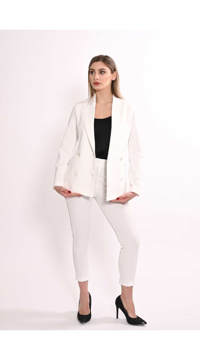 Giacca donna Vicolo doppiopetto con revers in raso, tinta unita , tasca a filo, bottone rivestito.