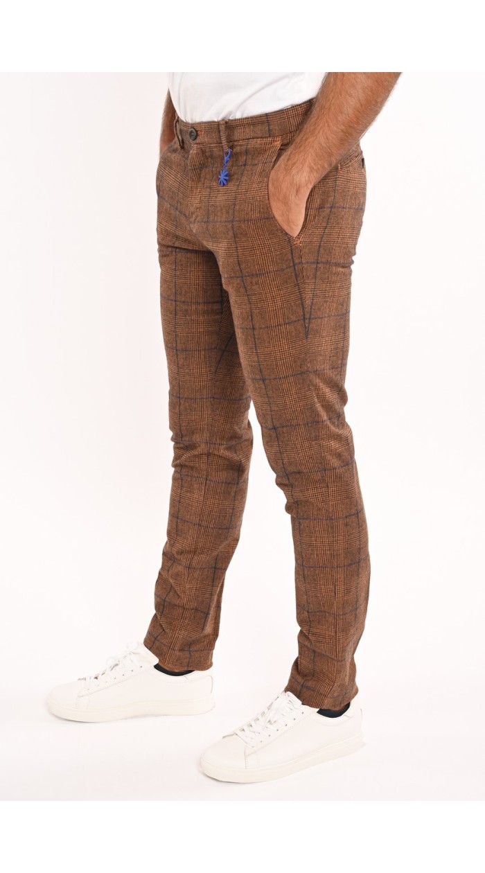 Pantalone uomo Manuel ritz principe di galles, tasca a filo, chiusura con zip e bottone, dettaglio pochette nella tasca sul retro.