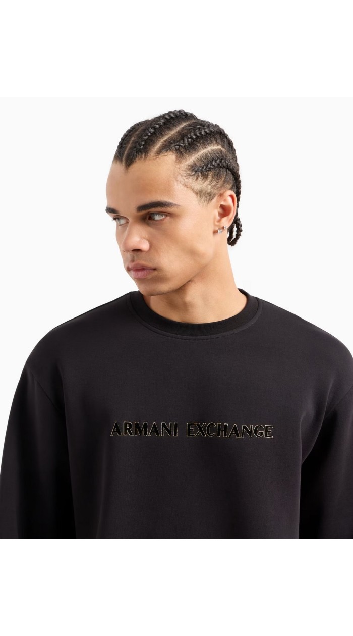 Felpa Armani Exchange realizzata in tessuto di spugna francese con dettaglio logo e finiture a costine. Girocollo, manica lunga, chiusura con zip.
