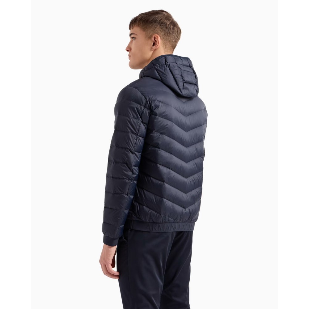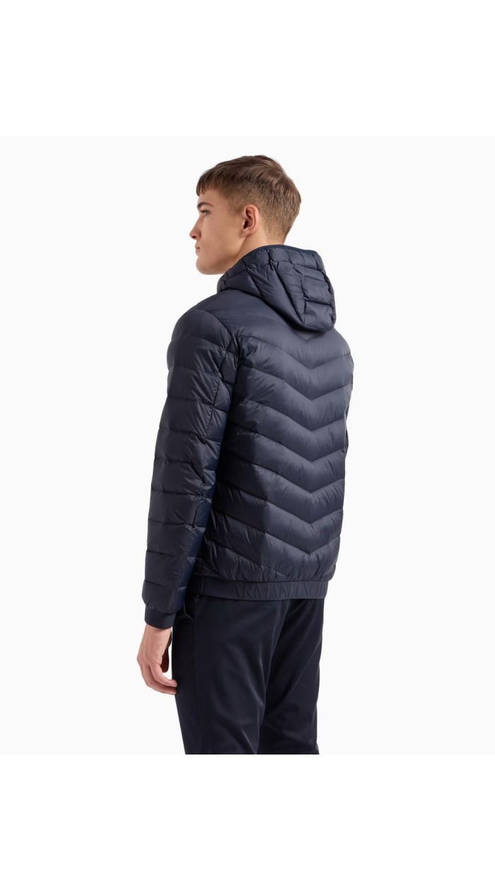 Piumino realizzato con esterno in tessuto coated trapuntato dotato di zip doppio cursore con tasche laterali con zip e fondo elasticizzato con logo tono su tono.