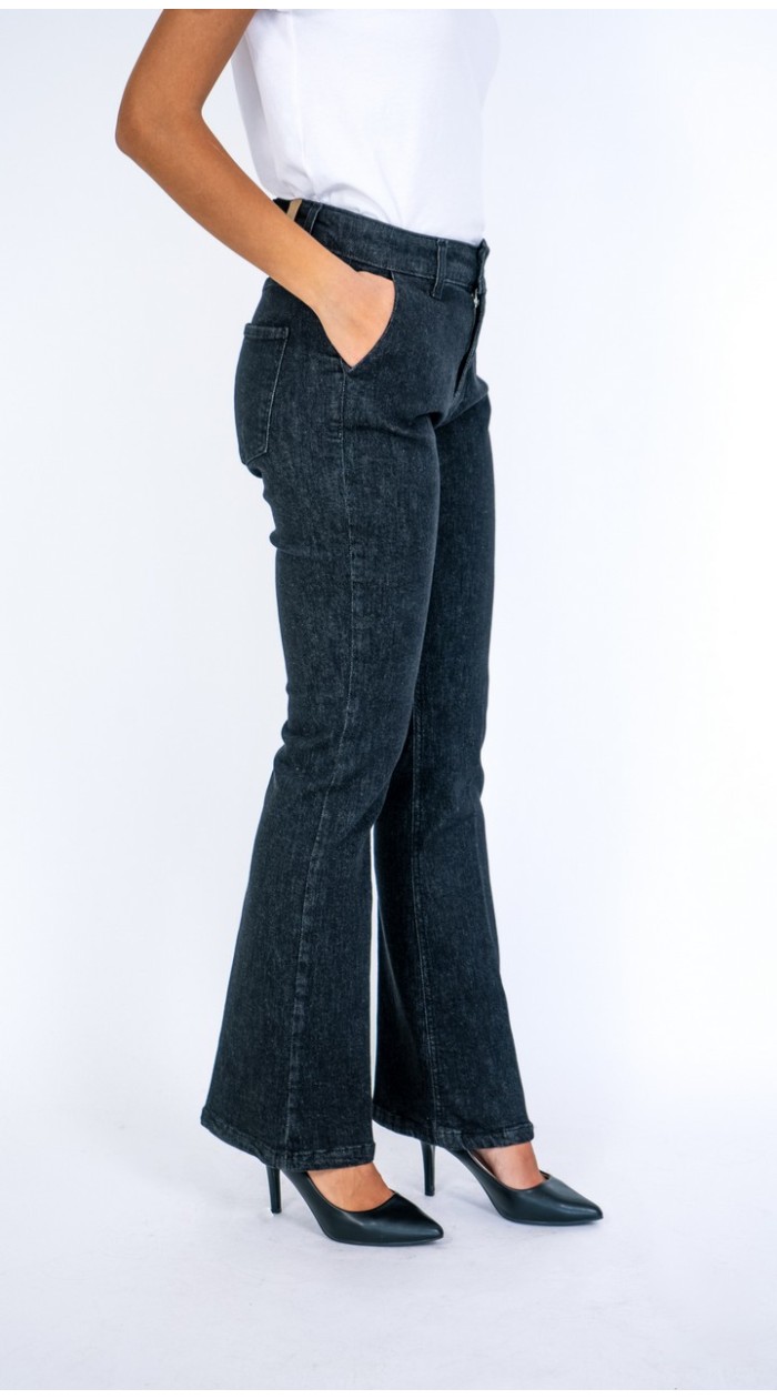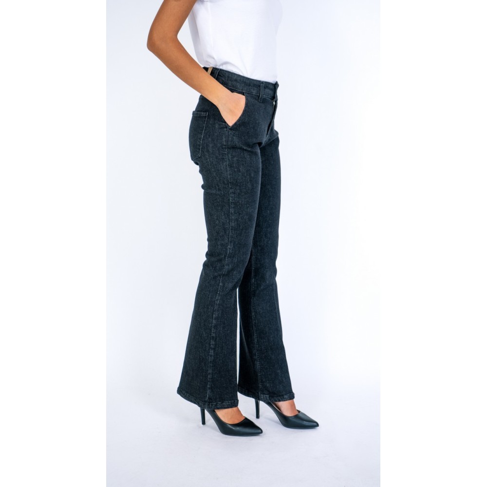 Jeans donna Dixie a zampa, lavaggio grigio scuro, chiusura con bottone e zip, tasca america, vestibilità slim.