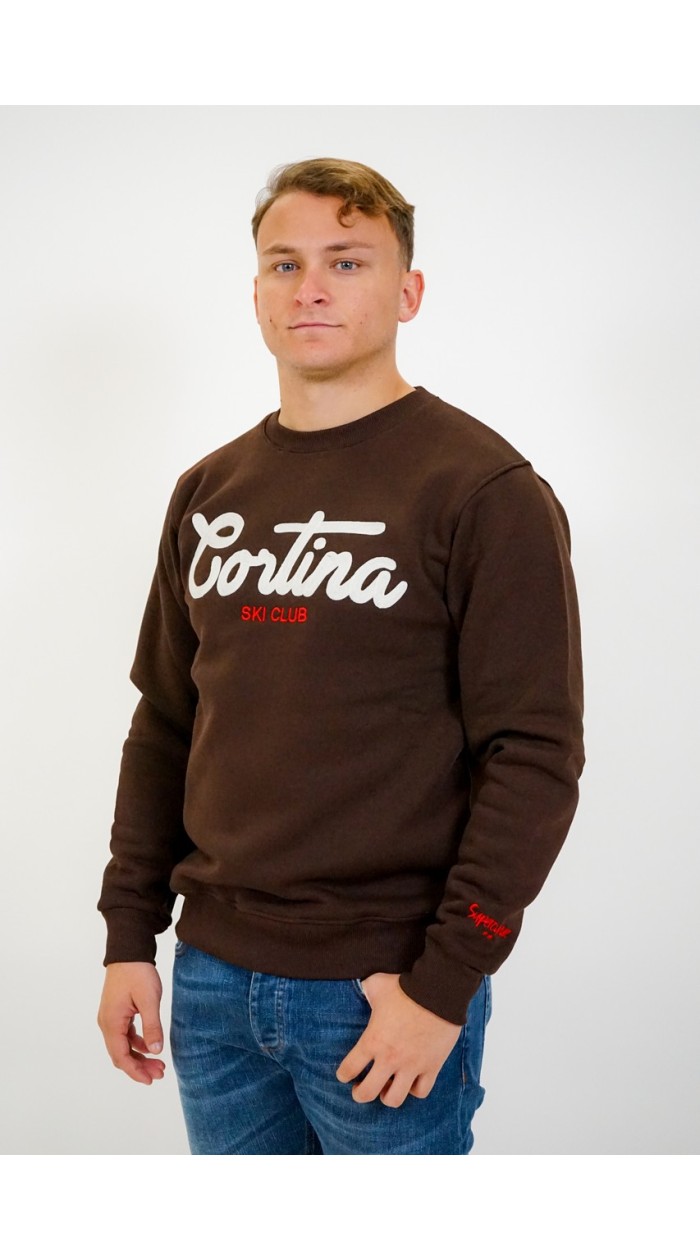 Pullover uomo Superculture Autunno Inverno 2025-26, ricamo sul davanti Curmayeur sky club, manica lunga, vestibilità regular.