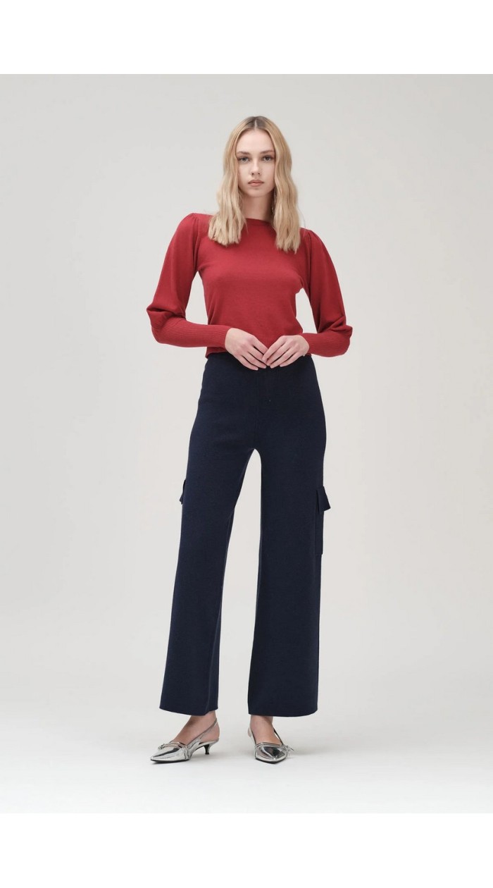 Pantalone donna White wise cargo in maglia, tinta unita, a palazzo, elastico in vita, vestibilità comoda.