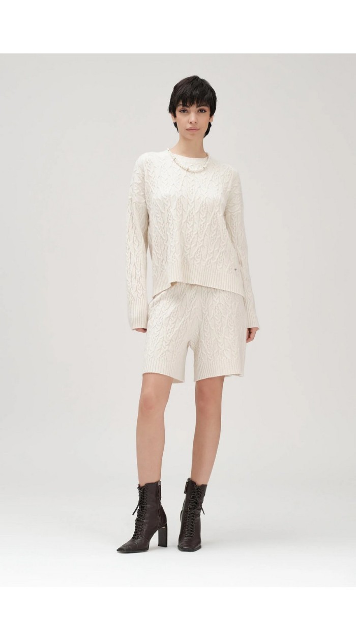 Shorts donna White wise in maglia con trecce, elastico in vita, vestibilità regular.