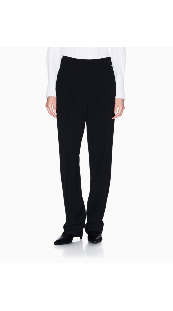 Pantaloni realizzati in tessuto fluido, un capo essenziale che ridefinisce il comfort.