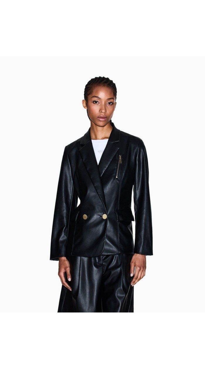 Giacca donna doppiopetto in tessuto spalmato Armani exchange, tasche frontali, bottoni dorati in contrasto, petto a lancia, vestibilità regular.