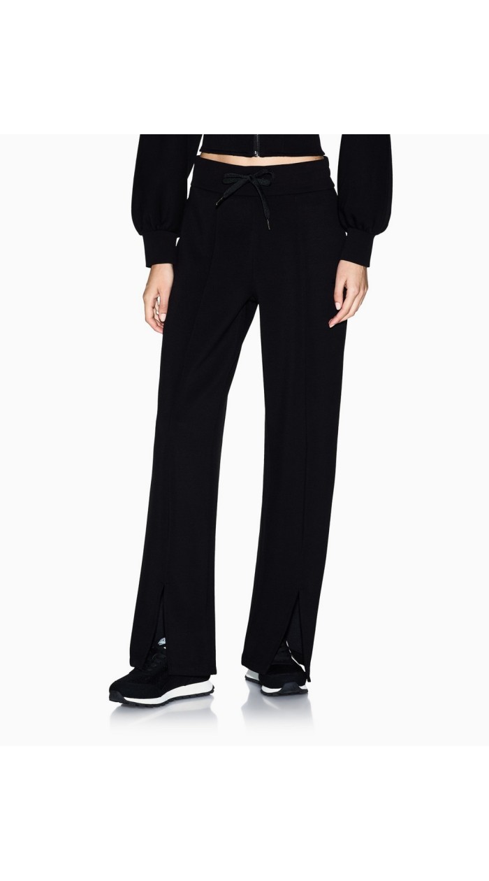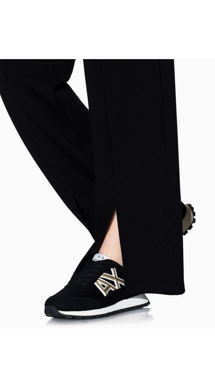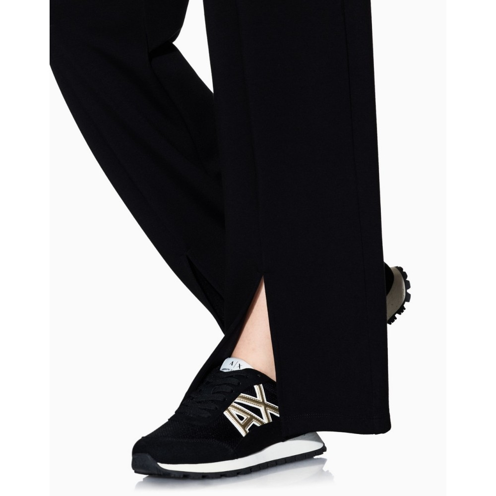 Pantalone tuta donna a palazzo con spacco sul fondo, elastico in vita, tinta unita, Armani exchange.