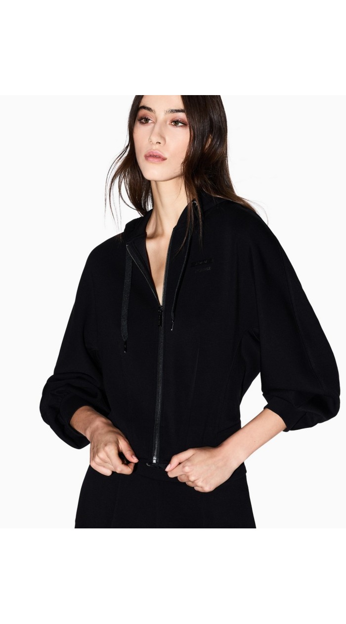 Felpa donna Armani exchange corta con zip e cappuccio, tinta unita. manica lunga, vestibilità slim.