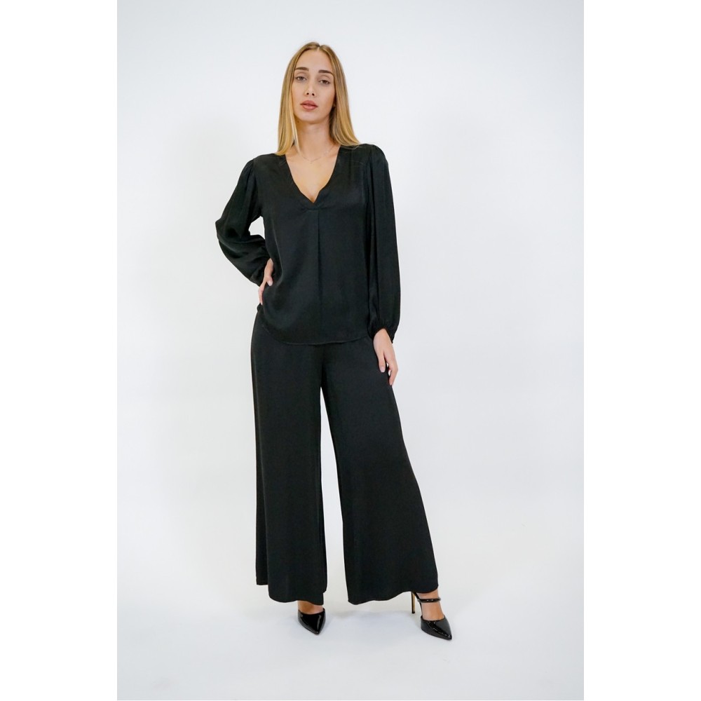 Blusa donna Haveone scollo a punta, effetto seta, vestibilità regular, manica lunga.