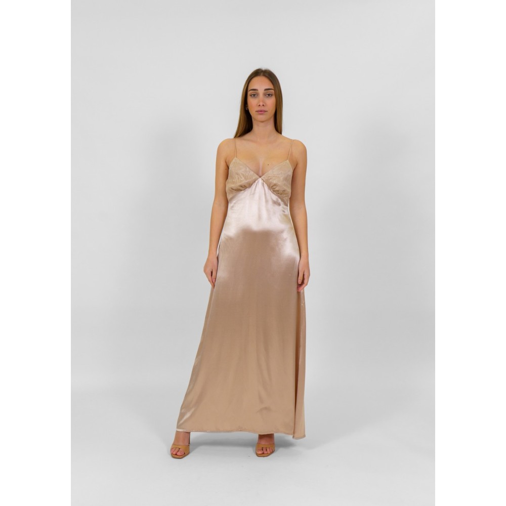 Abito donna lungo in seta Dixie, modello bikini con dettaglio pizzo, bretelline sottili. Vestibilità morbida.