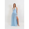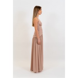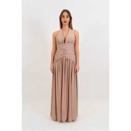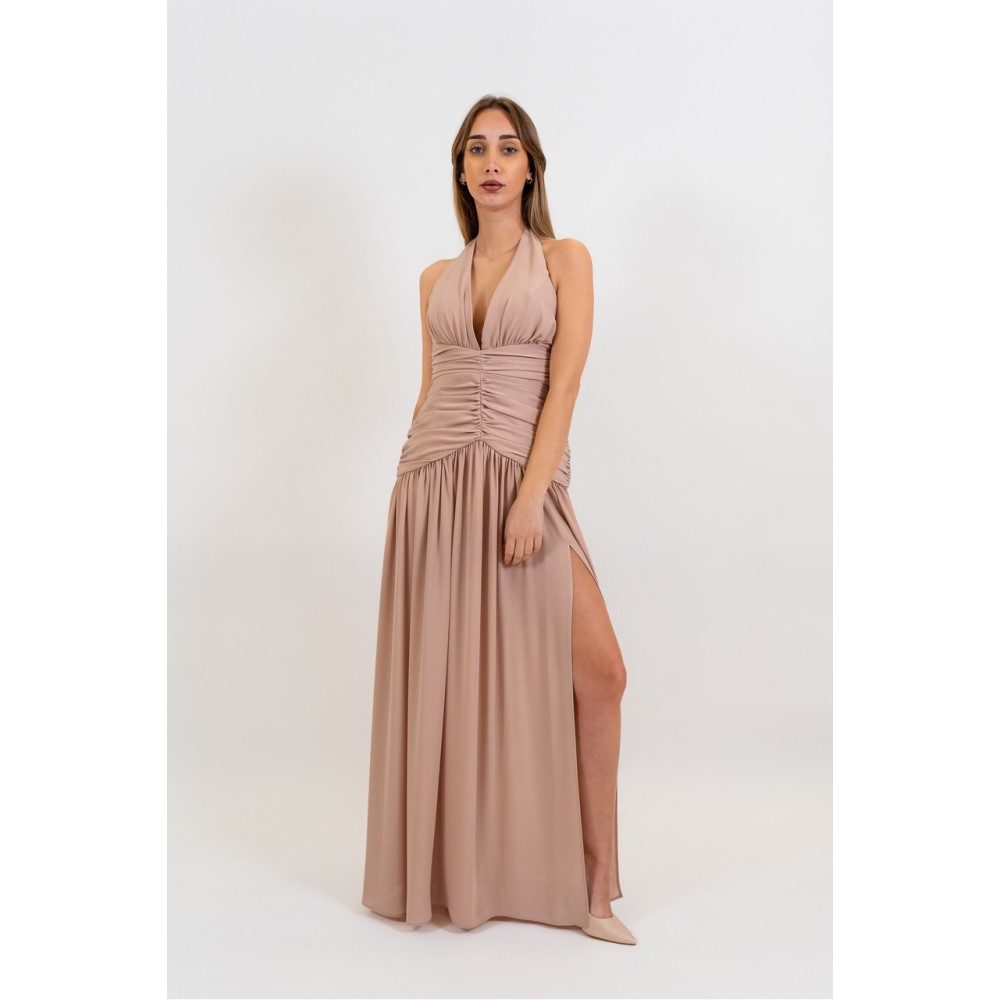 Abito donna Silence limited lungo, scollo bikini, tinta unita, drappeggio sul fronte, spacco laterale.