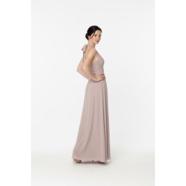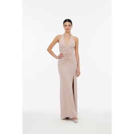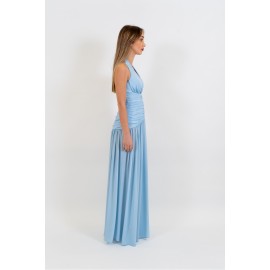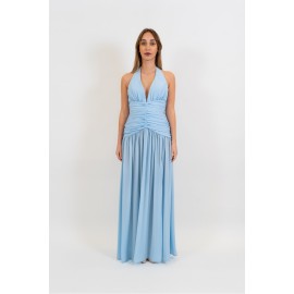 Abito donna Silence limited lungo, scollo bikini, tinta unita, drappeggio sul fronte, spacco laterale.