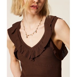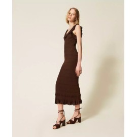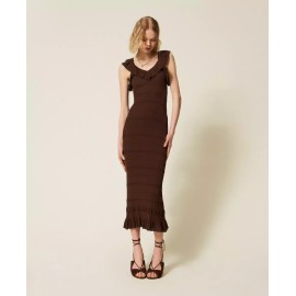 Abito longuette a costine con volant Twinset