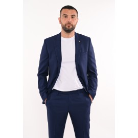 Abito uomo Manuel Ritz microfantasia, monopetto. Giacca con chiusura due bottoni, due tasche a pattina sul davanti, taschino con pochette removibile. Pantalone slim fit con due tasche america sul davanti e due a filo sul retro, chiusura con zip e bottone.