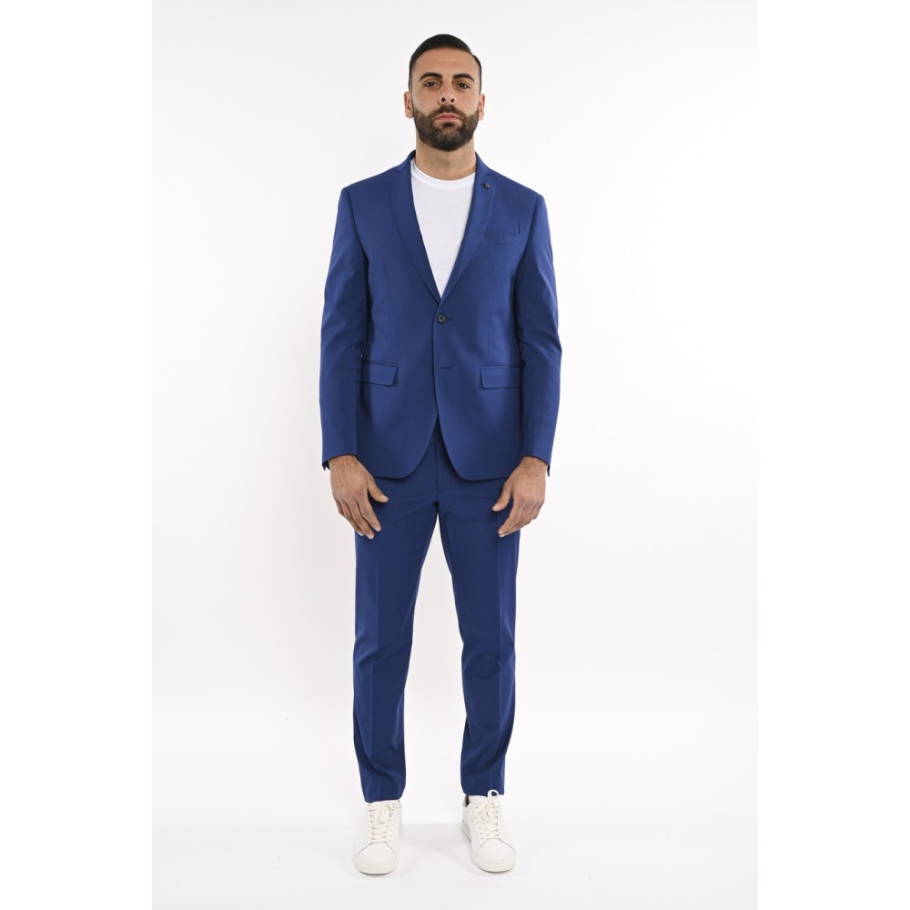 Abito uomo tinta unita Barbati. Giacca: monopetto, due bottoni, tasca con patta, vestibilità regular. Pantalone: tasca america, chiusura con zip, bottone e gancio, vestibilità slim. Il modello indossa la tg 48.