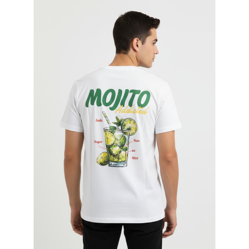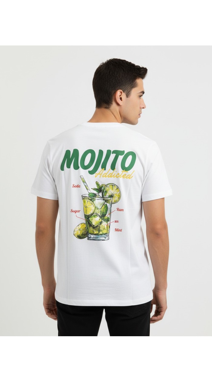 T-shirt uomo Superculture Primavera Estate, con stampa Mojito addicted sul fronte e sul retro. Girocollo, manica corta, vestibilità regular.