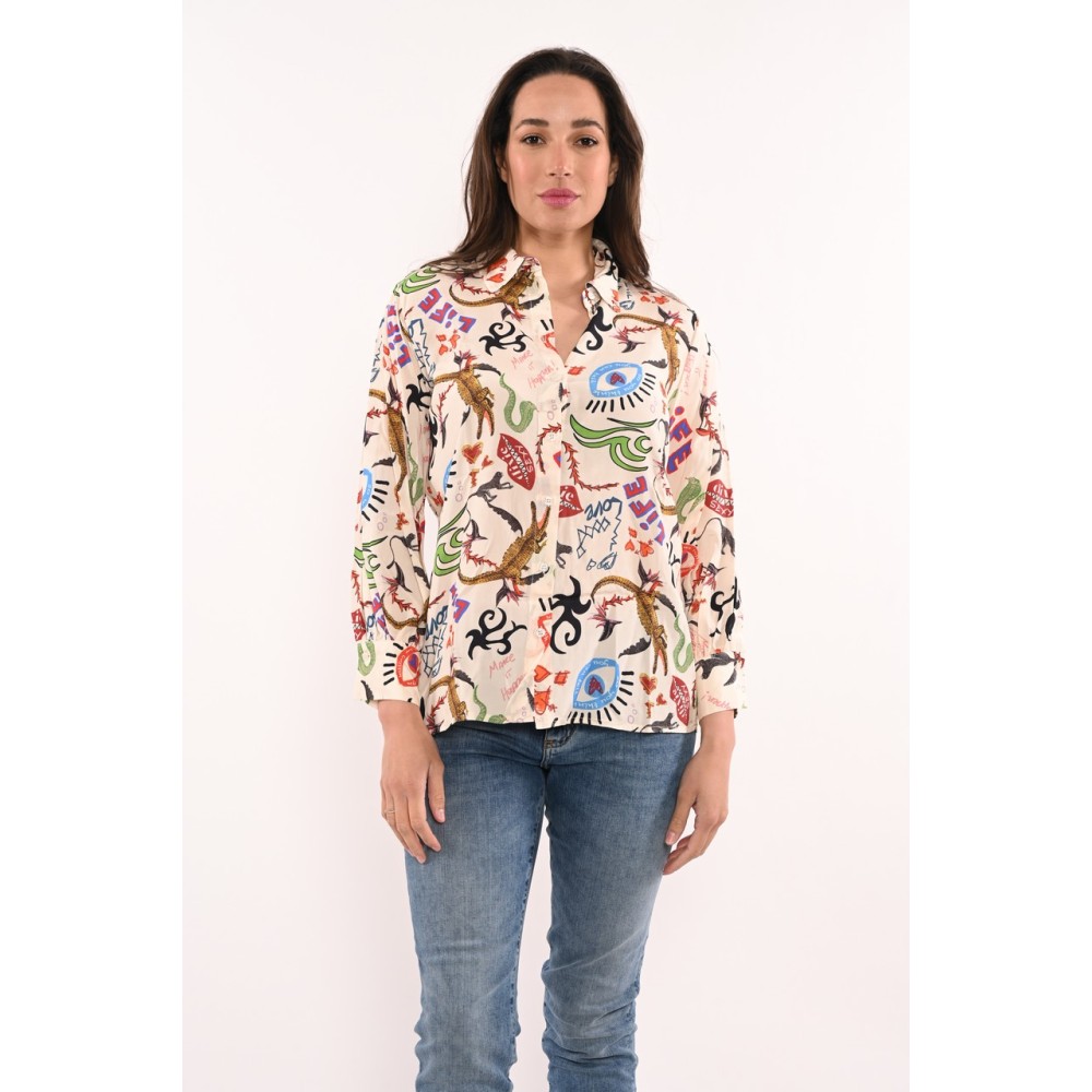 Camicia donna Dixie a fantasia, chiusura con bottoni, manica lunga, collo all'Italiana, vestibilità regular.