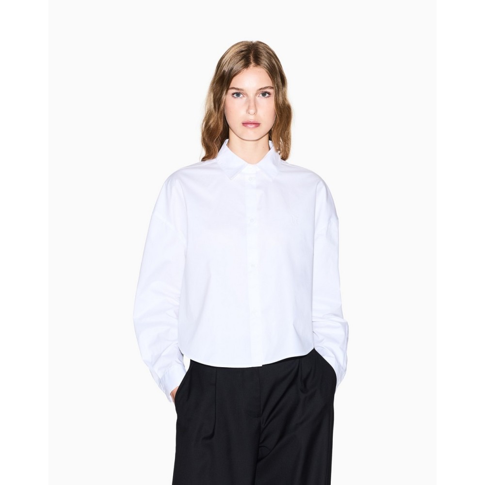 Camicia donna tinta unita A-X, modello crop oversize, chiusura con bottoni, manica lunga larga. Vestibilità morbida.