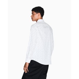 Camicia a maniche lunghe realizzata in un tessuto leggero e fluente, caratterizzata da una microfantasia all-over che aggiunge un tocco discreto ma distintivo.