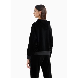 Lo stile sporty in versione fancy. Questa felpa è realizzata in velluto stretch ed è dotata di cappuccio, logo tono su tono e profili in tessuto a contrasto.