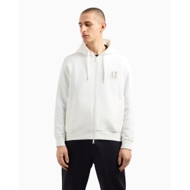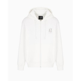 Felpa unisex Armani Exchange con zip e cappuccio, logo sul fronte, manica lunga, vestibilità regular.