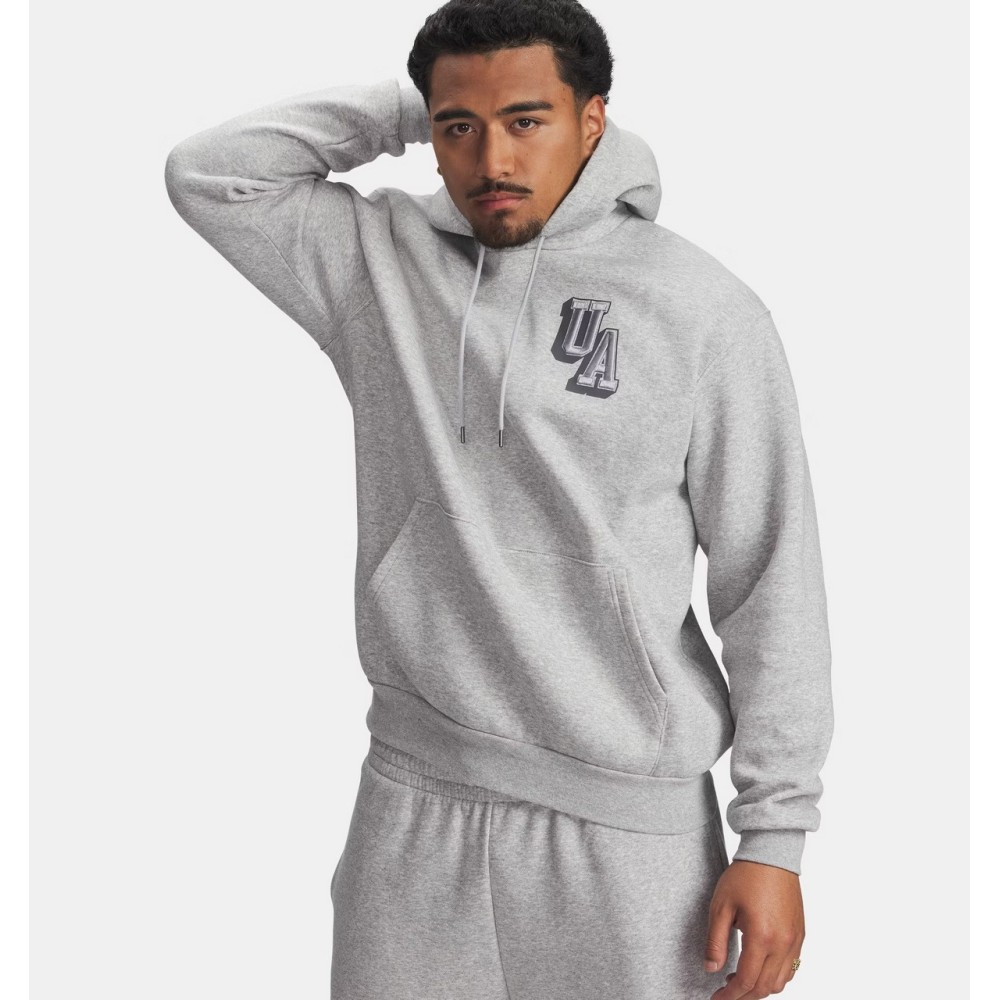 UA Icon Fleece ripropone il look del classico pile con una vestibilità pulita e oversize che si abbina perfettamente all'attrezzatura da palestra e ai capi streetwear. La grafica di questa felpa con cappuccio richiama lo stile iconico degli atleti dei college.