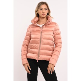 Realizzato in nylon dalla finitura lucente, il piumino animal-free Elsie si distingue per il collo a vulcano e la linea ad A, tutta trapuntata con motivo orizzontale.