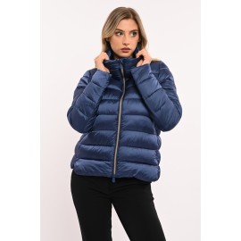 Realizzato in nylon dalla finitura lucente, il piumino animal-free Elsie si distingue per il collo a vulcano e la linea ad A, tutta trapuntata con motivo orizzontale.