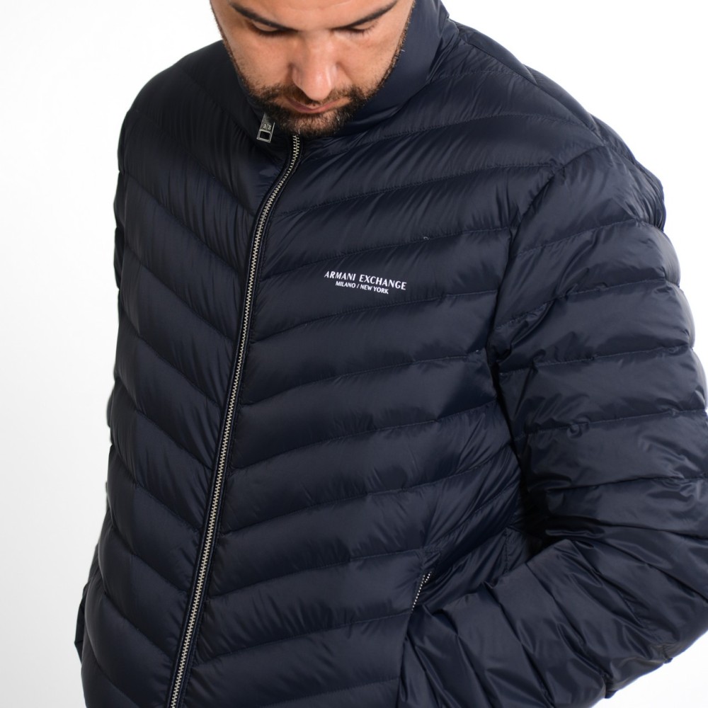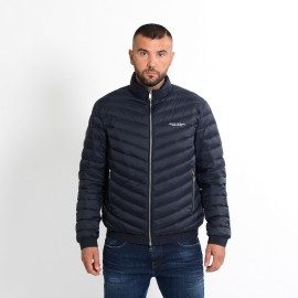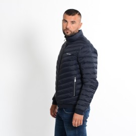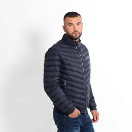 Piumino realizzato con esterno in tessuto coated trapuntato dotato di zip doppio cursore con tasche laterali con zip e fondo elasticizzato con logo tono su tono.