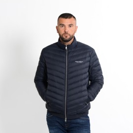 Giacca uomo monopetto tinta unita Manuel Ritz, chiusura con due bottoni, vestibilità slim, dettagli impunturati, tasca con toppa. Il modello indossa la tg 48.
