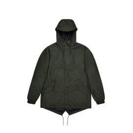 Il Fishtail Jacket ha una vestibilità casual con un drappeggio elegante, che lo rende un impermeabile elegante per gli spostamenti quotidiani. La chiusura con cerniera rivestita è nascosta da un'abbottonatura minimalista con automatici nascosti. Questa giacca antipioggia è realizzata nell'iconico tessuto PU di Rains e presenta cuciture nastrate. Il finish è leggero, morbido al tocco.