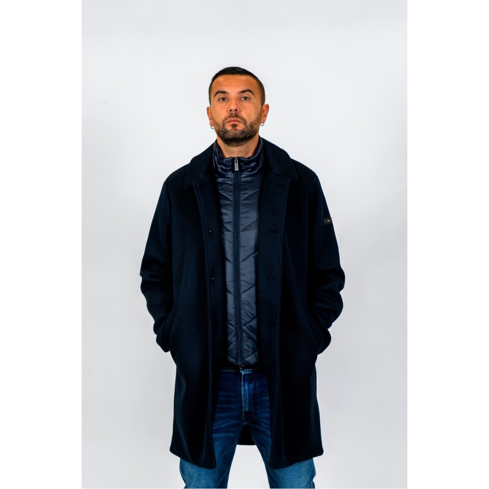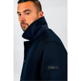 Giacca one-breasted con pettorina staccabile, realizzata in un particolare tessuto a maglia ingegnerizzato. L’iconico tessuto è realizzato in una fibra in poliestere riciclato mechanical stretch di nuova generazione, accoppiato ad un particolare materiale denominato Foam o meglio Fibra poliuretano, per far sì che si adatti al meglio alle caratteristiche del corpo, rinforzata con una maglina light coniugando funzionalità, comfort e resistenza. Mediante suddetta fibra il prodotto finale mantiene la linea di tessuto che cade perfettamente senza creare nessuna imperfezione sulla vestibilità. Imbottitura traspirante eco-friendly contrassegnata dal marchio Sofeelate®. Il tessuto esterno in maglia riciclata insieme al processo di iniezione dell’imbottitura Sofeelate, dona ancora più morbidezza e rotondità al capo. E’ sviluppato appositamente per coniugare il peso e il comfort di una maglia seppure garantendo le funzionalità protettive e la tecnicità di un capo outdoor.